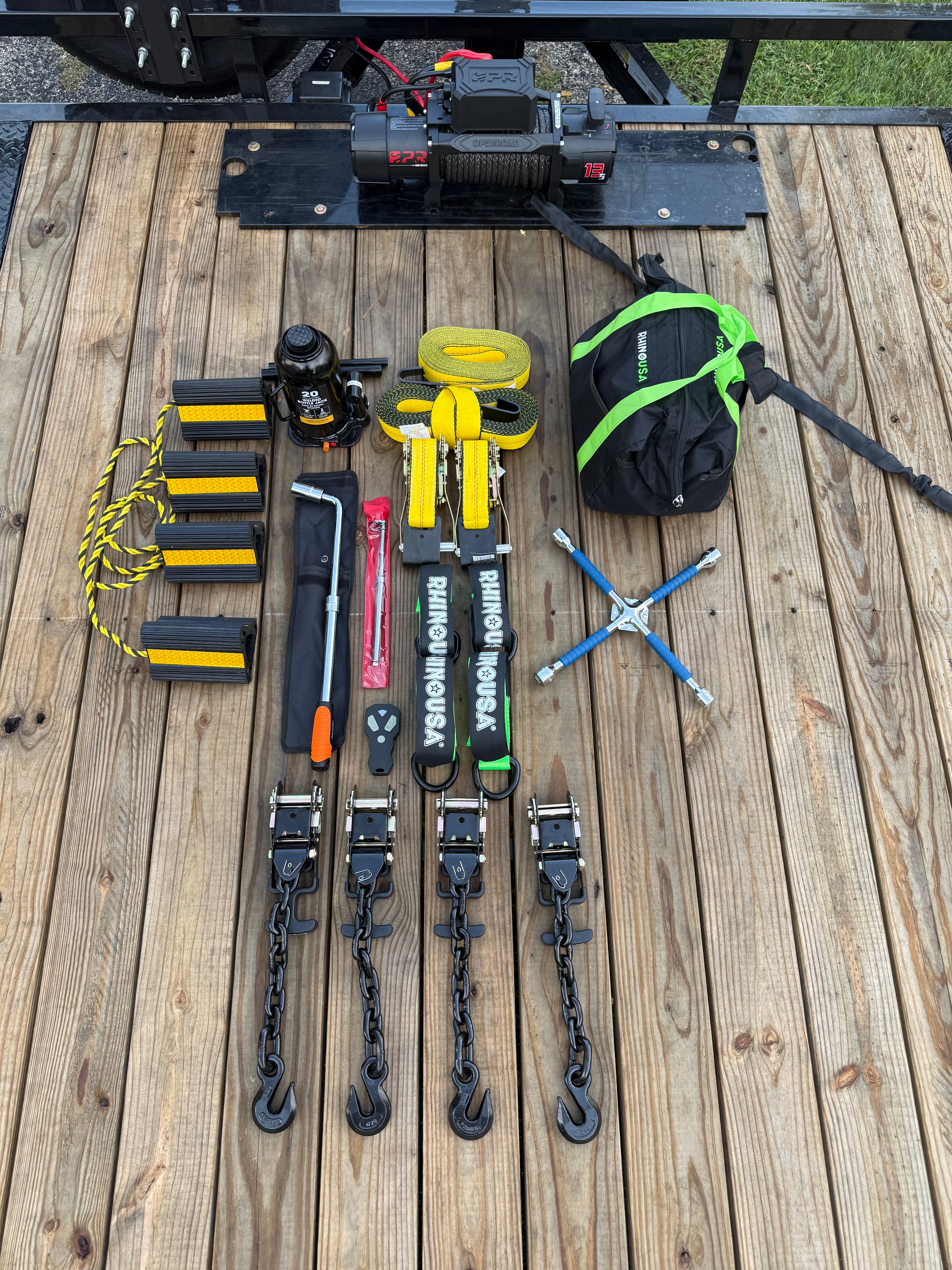 - 13,500 lb Winch (with remote) – Smooth loading/unloading